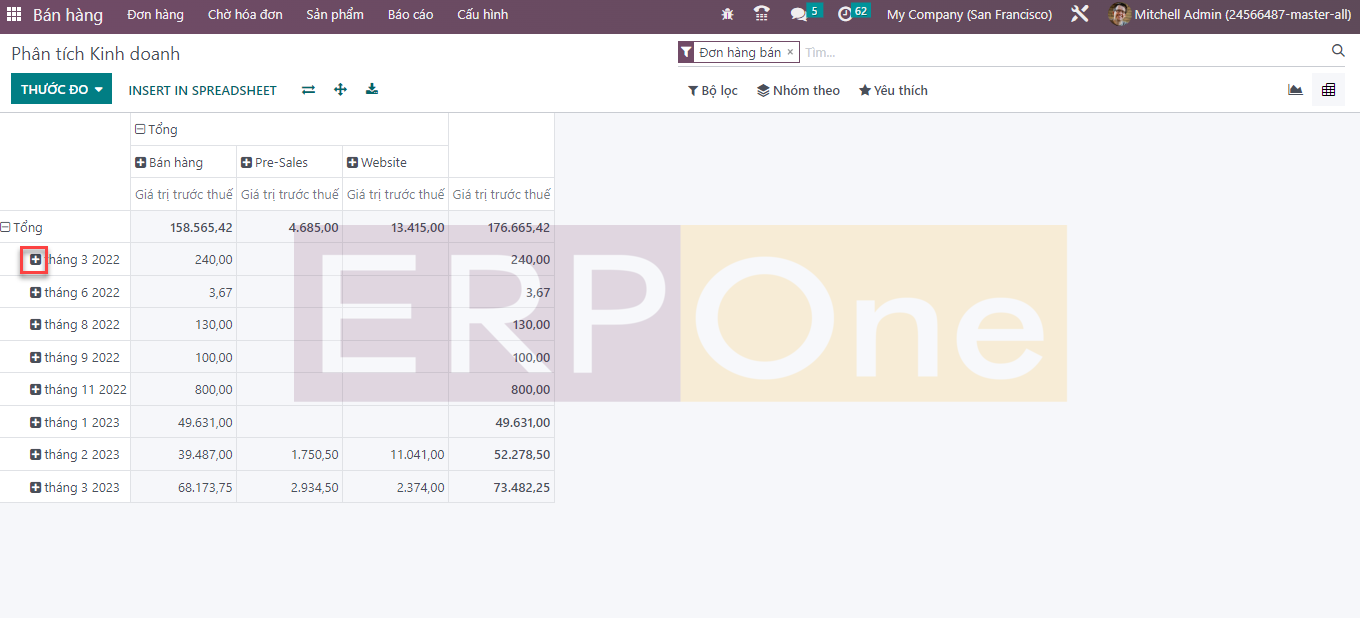 Bạn có thể tạo các báo cáo bán hàng cần thiết bằng cách điều chỉnh các Thước đo.