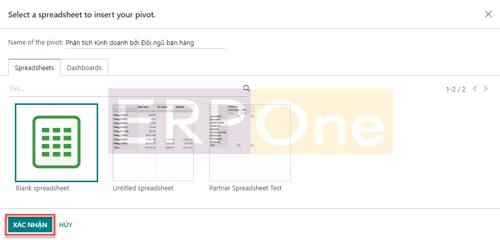 Sau khi chọn bảng tính phù hợp cho báo cáo bán hàng của mình, bạn có thể nhấp vào nút Xác nhận.