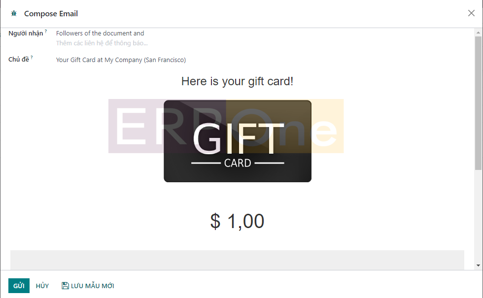 Nhấp vào nút Gửi sẽ cho phép bạn gửi thẻ quà tặng cho khách hàng cụ thể qua thư.