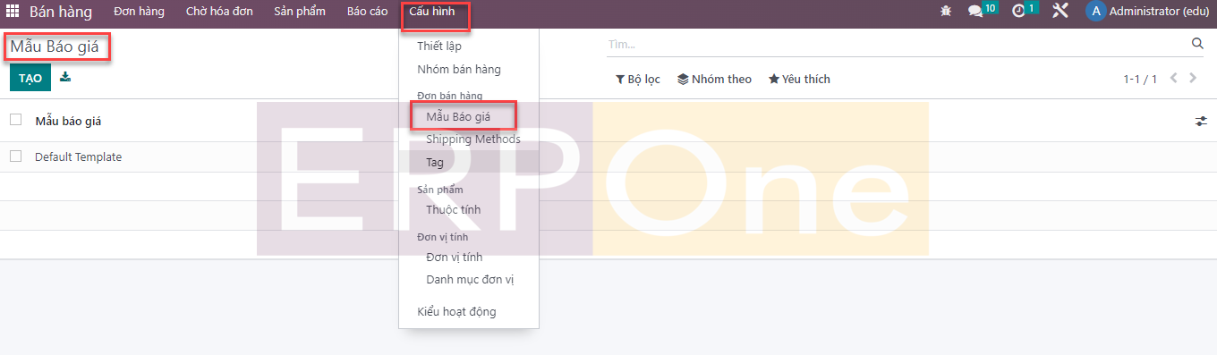 Vì chúng ta đã rõ về cách tạo các mẫu báo giá mới trong mô-đun Bán hàng, bây giờ chúng ta hãy xem cấu hình của Thẻ bán hàng.