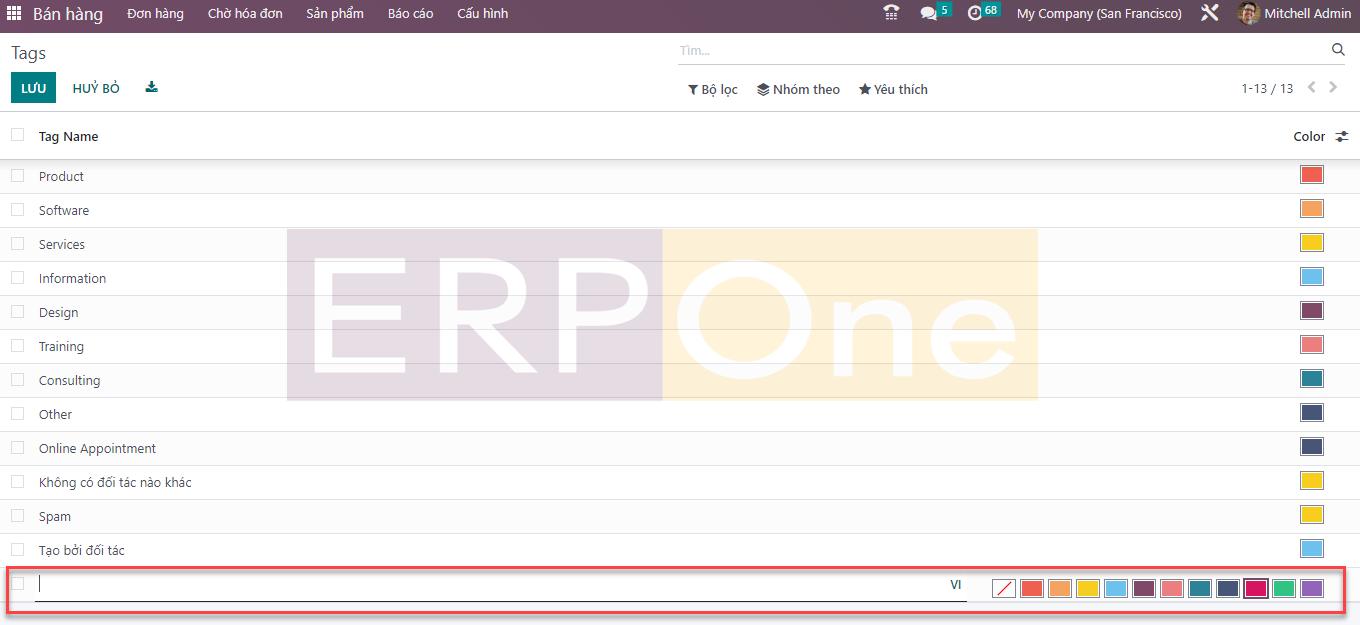 Danh sách các thẻ được định cấu hình sẵn sẽ xuất hiện trên màn hình của bạn với các chi tiết về Tên và Màu thẻ.