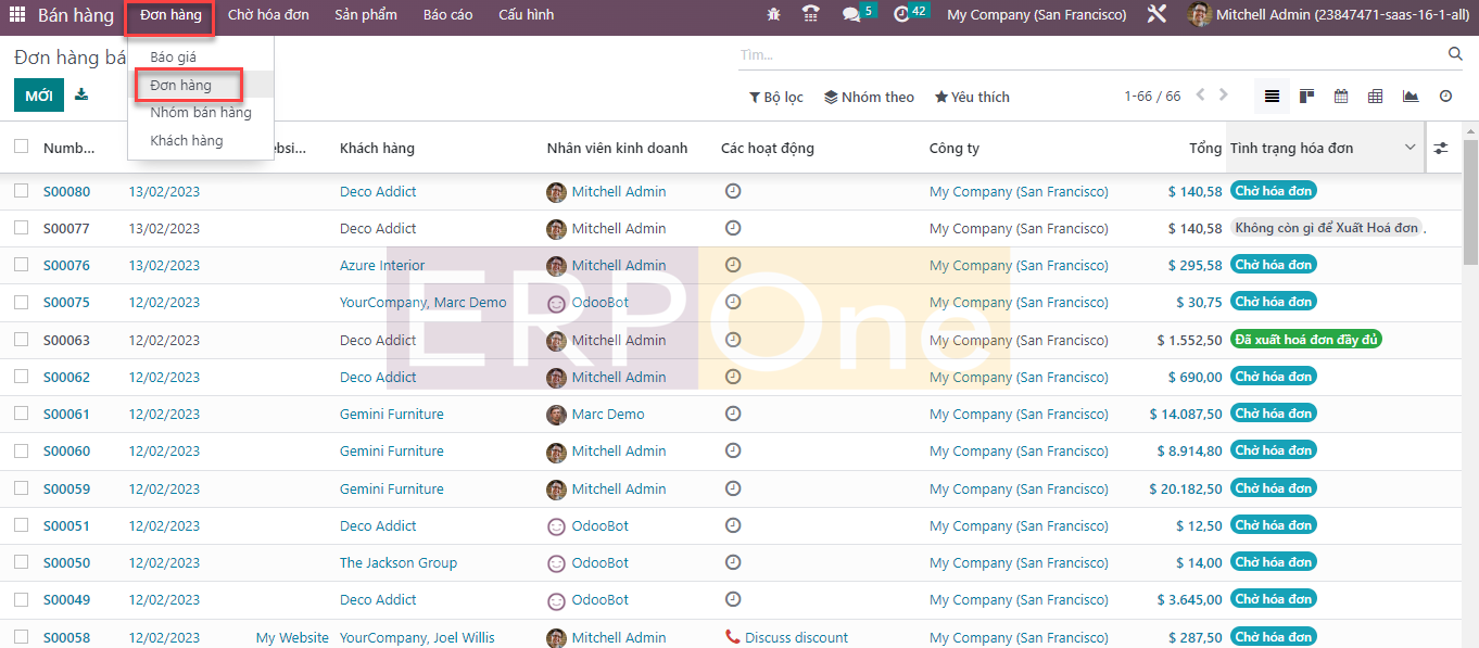 Bây giờ, hãy xem cách tạo hóa đơn từ các đơn đặt hàng đã xác nhận.