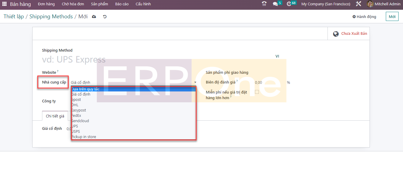 Tên của Phương thức vận chuyển có thể được đề cập trong trường nhất định. Đề cập đến ID trang web để cung cấp dịch vụ vận chuyển này trên trang web Thương mại điện tử của bạn. Trong trường Nhà cung cấp, bạn được phép lựa chọn nhà cung cấp dịch vụ vận chuyển phù hợp cho việc giao hàng của mình.