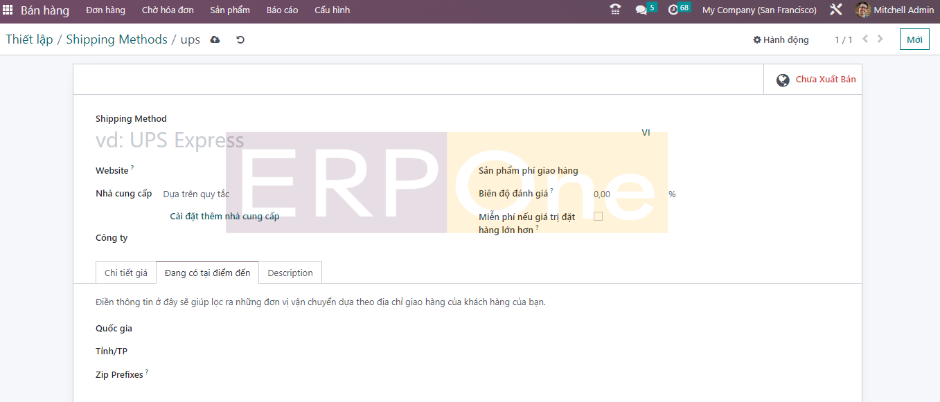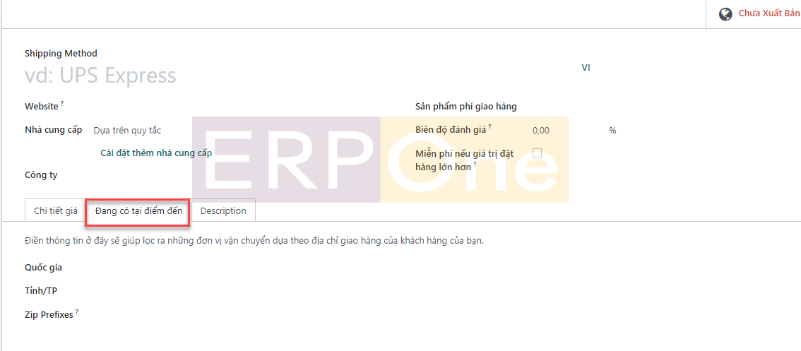 Trong tab Điểm đến khả dụng, bạn có thể chỉ định các điểm đến nơi phương thức vận chuyển này khả dụng.