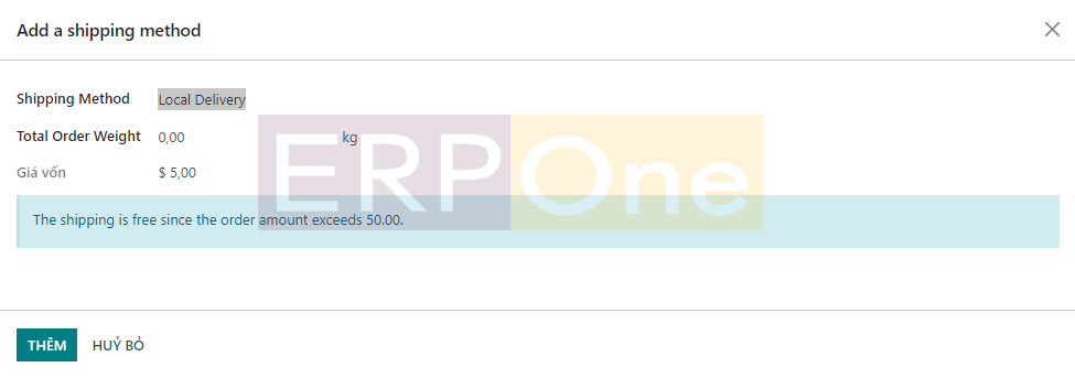 Một cửa sổ bật lên sẽ xuất hiện để chọn Phương thức vận chuyển và Chi phí sẽ được hiển thị theo phương thức vận chuyển đã chọn.