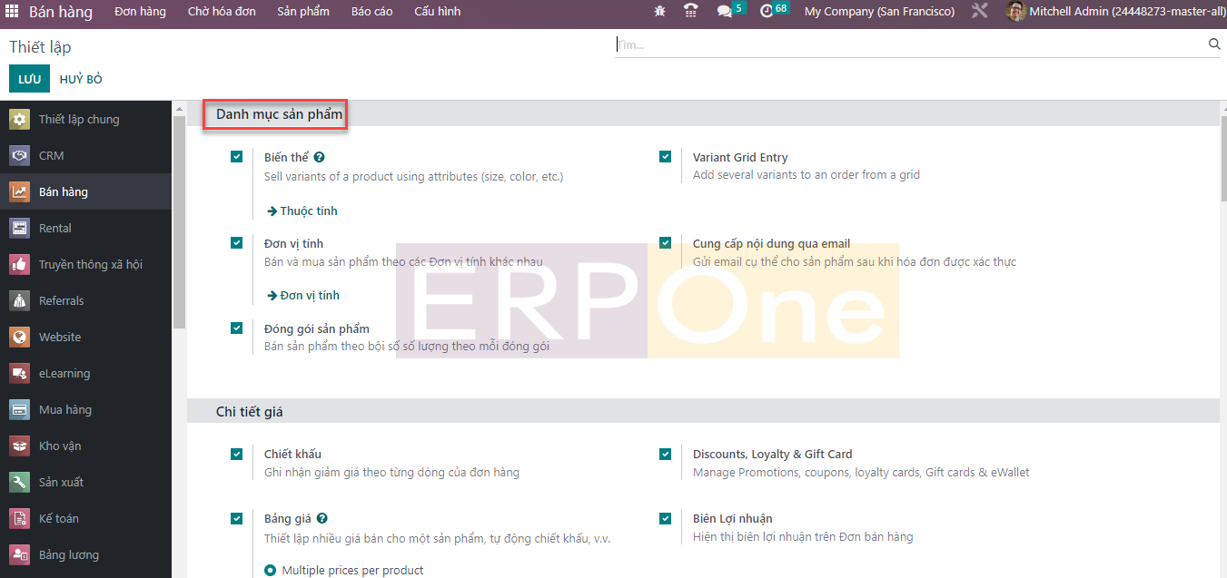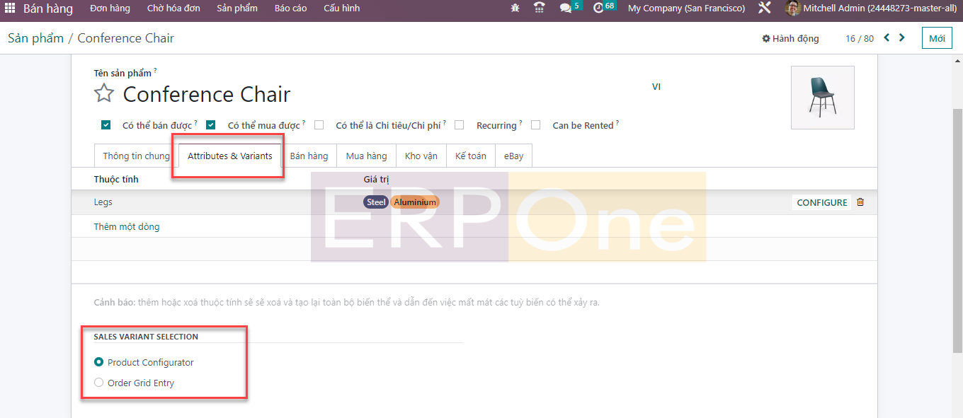 Trong khi thảo luận về cấu hình sản phẩm trong mô-đun Bán hàng, chúng tôi đã đề cập đến cách cấu hình các biến thể cho sản phẩm. Bằng cách kích hoạt tùy chọn Biến thể từ tab Danh mục sản phẩm, Odoo sẽ cho phép bạn đặt nhiều biến thể của sản phẩm với các thuộc tính của chúng.