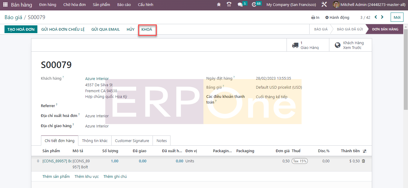 Như trong hình bên dưới, bạn có thể tìm thấy tùy chọn Khóa trong đơn đặt hàng sẽ giúp bạn khóa đơn đặt hàng đã xác nhận.