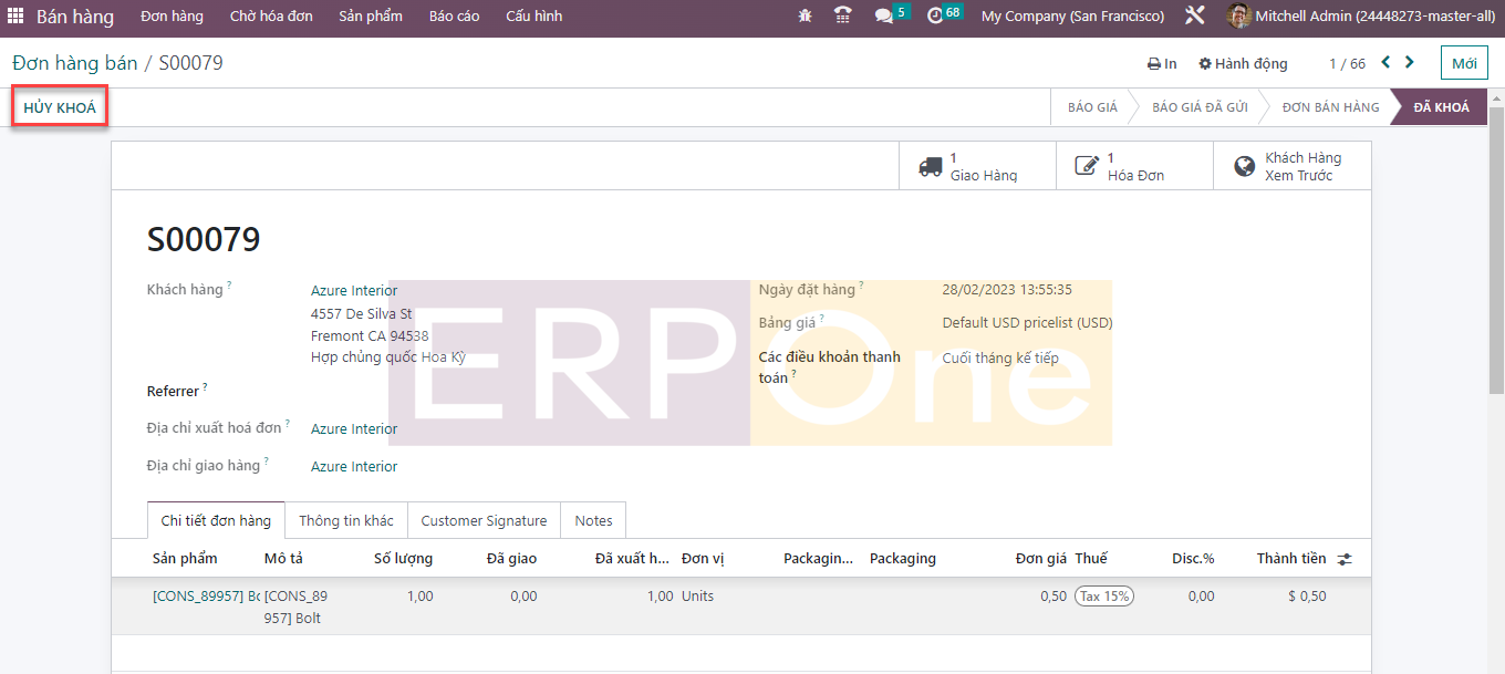 Bạn có thể Mở khóa đơn đặt hàng bằng cách sử dụng nút được chỉ định.