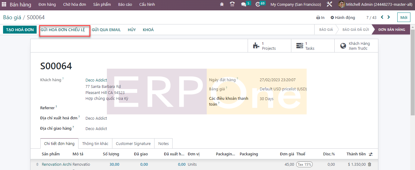 Bạn sẽ nhận được Gửi hóa đơn chiếu lệ trên cửa sổ đơn đặt hàng như trong hình trên. Khi bạn nhấp vào nút này, một cửa sổ bật lên sẽ xuất hiện trên màn hình.
