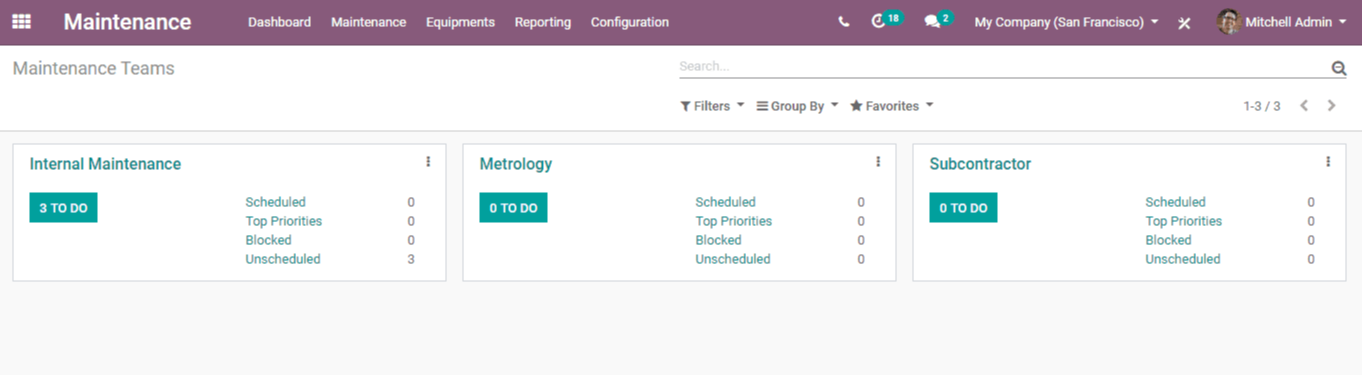 Odoo hỗ trợ người vận hành tạo và gửi yêu cầu về các vấn đề liên quan đến tài sản, thông báo đến từng bộ phận liên quan. Quản lý tập trung các kết quả kiểm tra để có cái nhìn tổng quan về tình trạng tài sản toàn hệ thống. Nghiệp vụ kiểm tra và giám sát vận hành được hỗ trợ nhanh chóng bằng ứng dụng di động. Quy trình quản lý bảo trì khắc phục khép kín từ khi phát hiện đến khi sự cố được khắc phục với 5 bước: